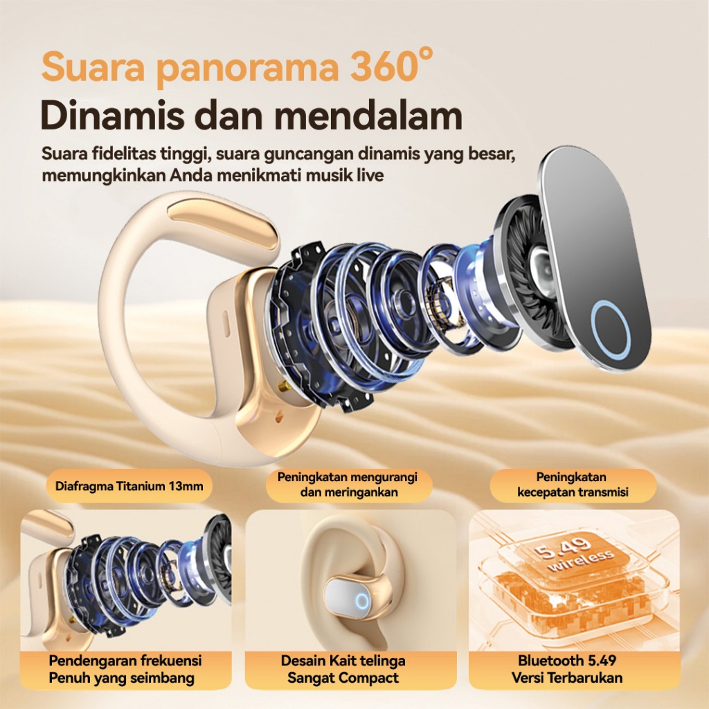 TOUITECH Earphone Bluetooth 5.4 Clip On Sport Wireless Headset Suara Jernih Baterai Tahan Lama Desain Elegan HS350