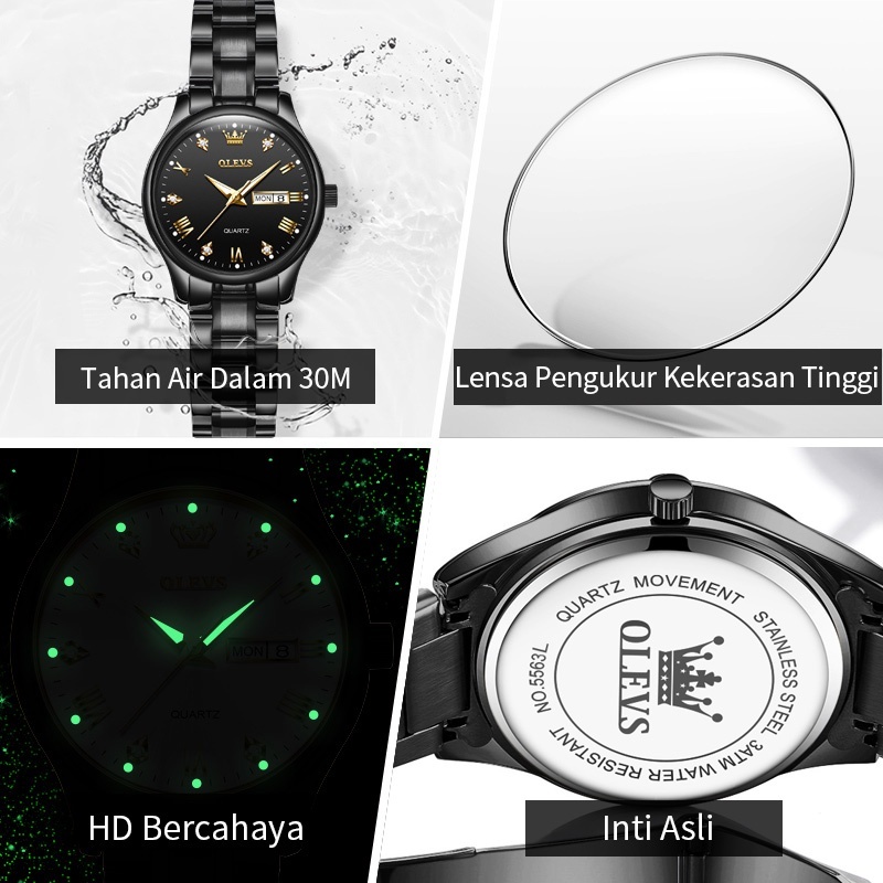 OLEVS Jam Tangan Wanita Anti Air Original Stainless Steel Terbaru 2025 Unik Women Watch Model 5563