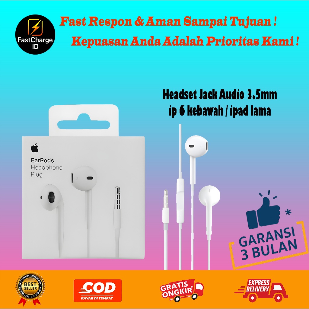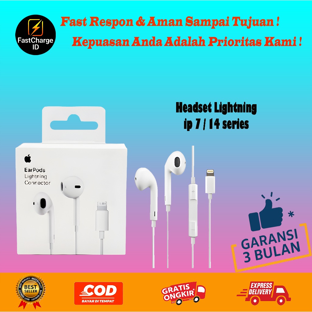 Headset Apple Lightning Type C Jack 3.5mm – Earphone iPhone 6–16, iPad