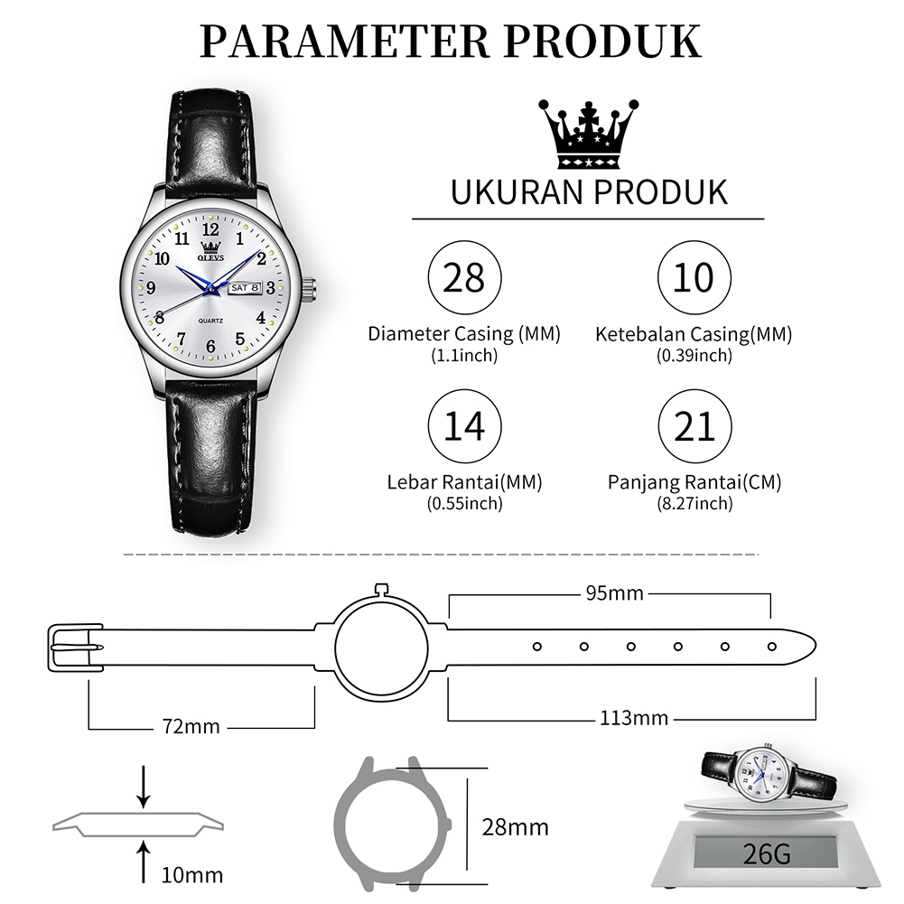 OLEVS Jam Tangan Wanita Original Anti Air Kulit Elegan Kecil Cewek Quartz Women Watches 5006