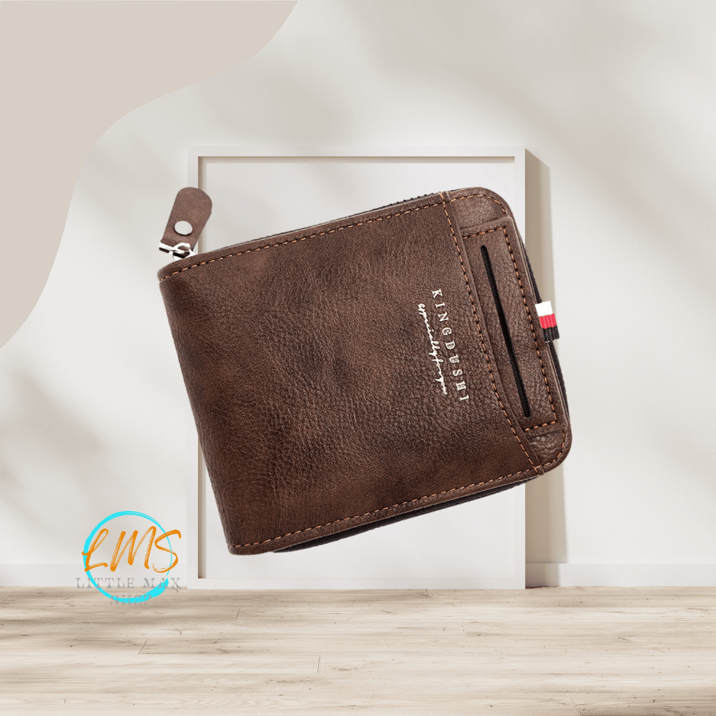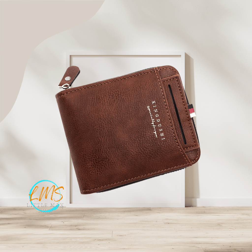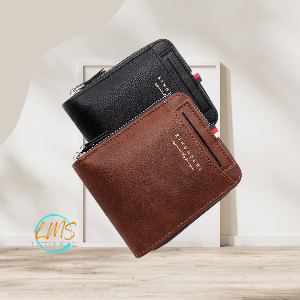 [Lms] Dompet Lipat Pria Kulit PU Resleting Original | Minimalis Ringan Tahan Air | Banyak Slot