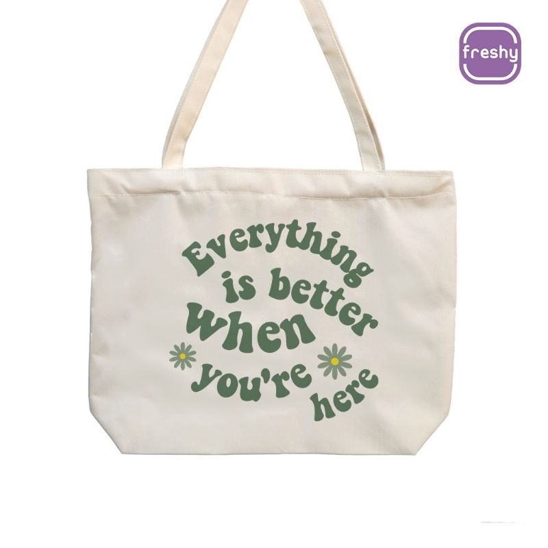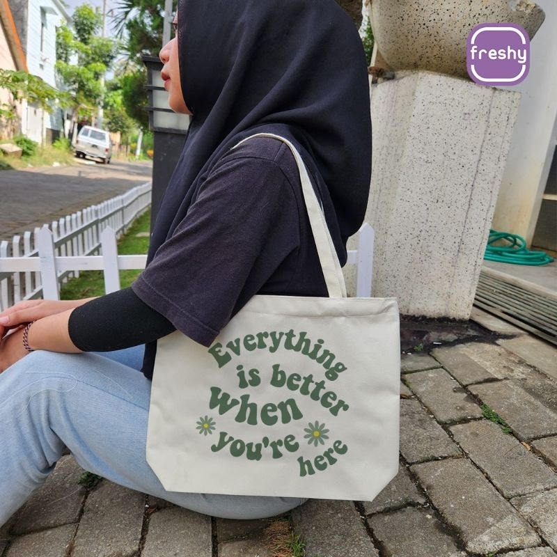 Tote Bag Kanvas Dinnir Quotes Aesthetic Tas Wanita uk. 35x30 Pakai Resleting