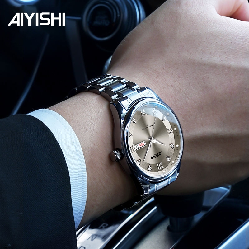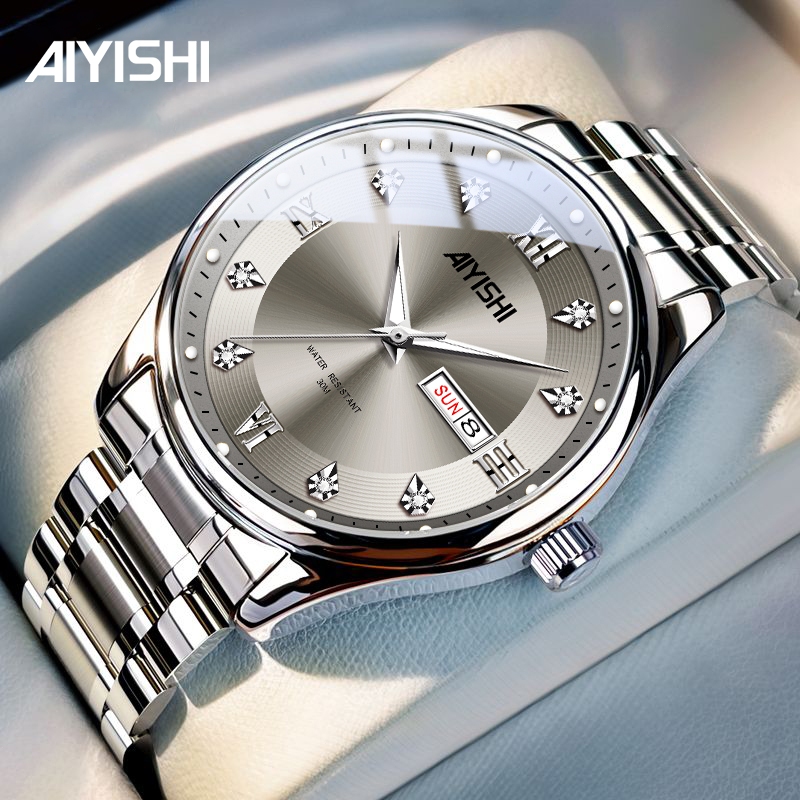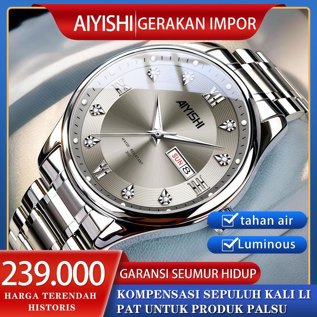 AIYISHI Jam tangan pria asli baru, jam tangan pria tahan air, rantai baja tahan karat Kasual Mekanikanalog bisnis bercahaya
