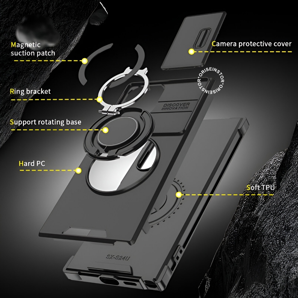 Brox Case - Full Protection Case With Slide Camera Protector And Standing Ring Mobile Phone Case Suitable For Samsung A1