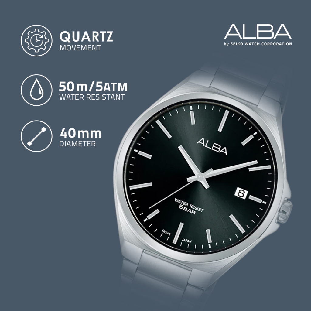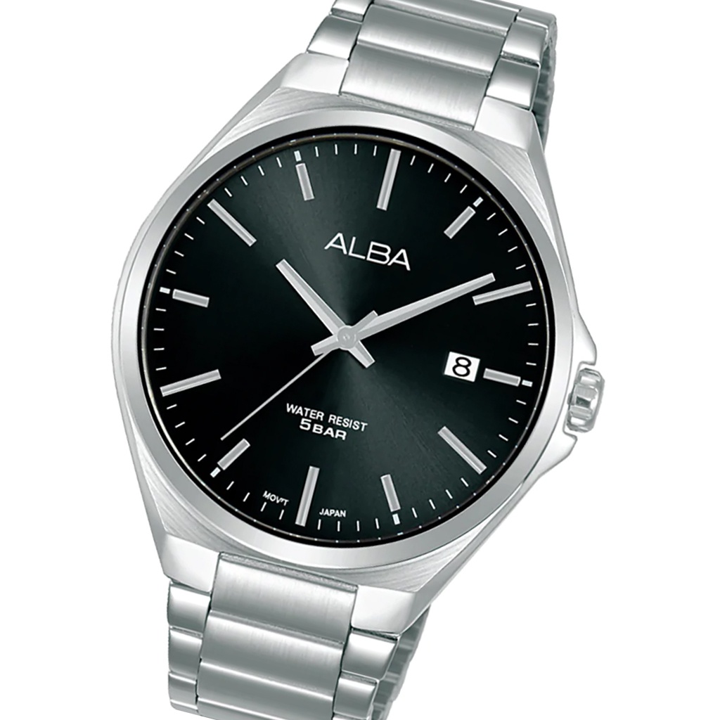 Alba Prestige Jam Tangan Pria AS9P89 / AS9P89X1 Quartz Black Dial Stainless Steel Strap Watch