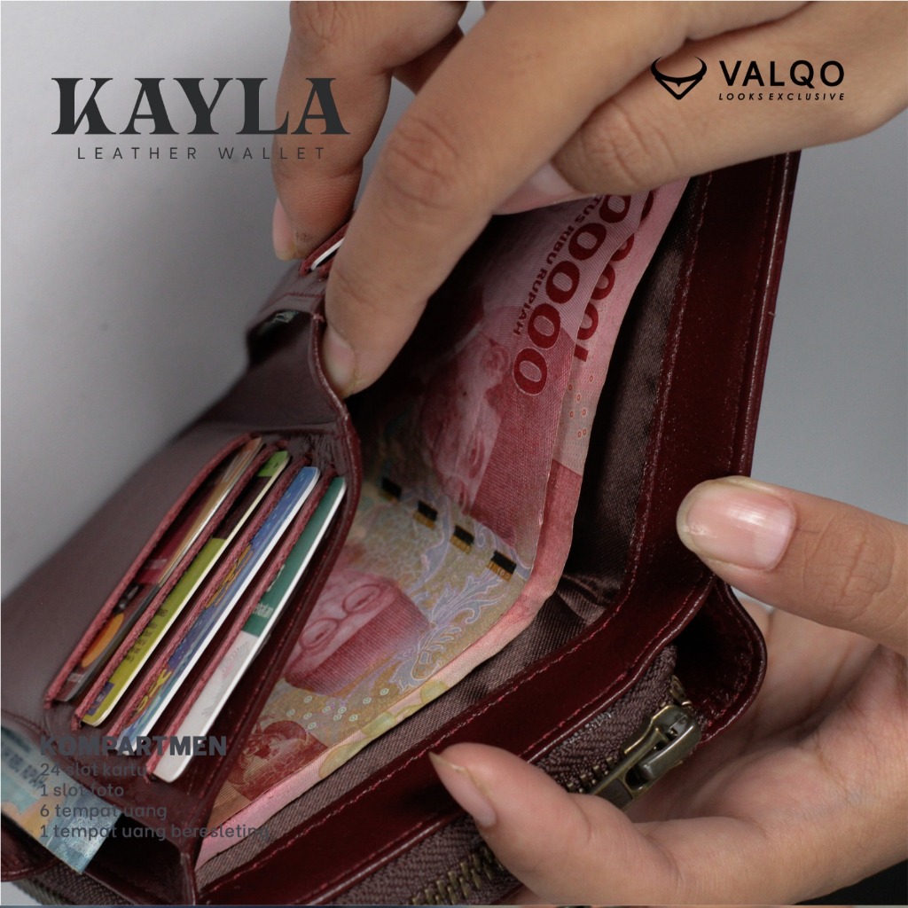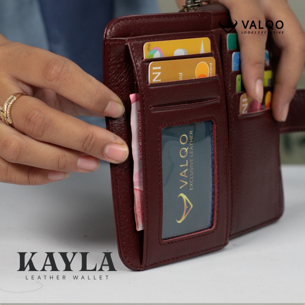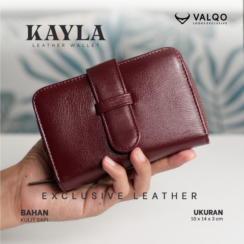 VALQO KAYLA Dompet Kulit Sapi Wanita 10 Kartu 1 Foto Slot Resleting Dompet wanita Dompet kecil Dompet Pendek