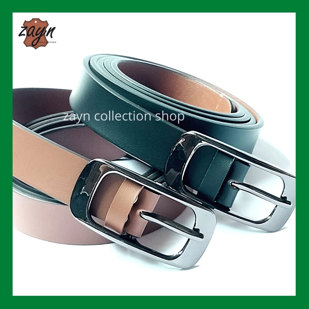 Ikat Pinggang Wanita Unisex Model Tusuk Jarum Kepala Kotak Besi Gesper Cewek Ring Belt Fashion Korea Formal