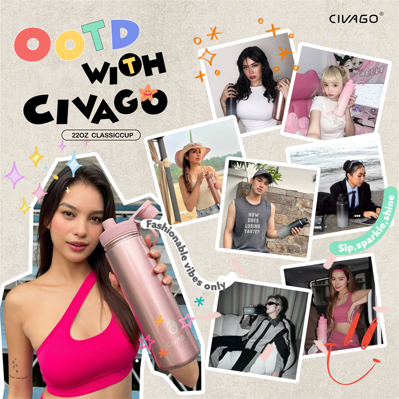 Tumbler Air MInum Civago 22oz/650m Tumbler Mulut Lebar Tutup Botol Air Olahraga Terisolasi Vakum Panas Dingin