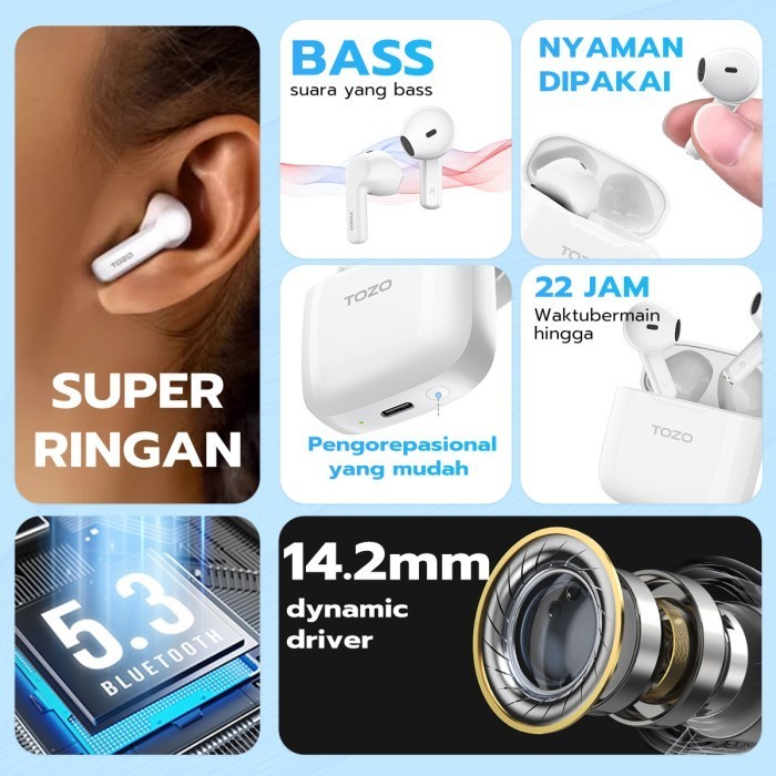 TOZO A3 Wireless Headset Bluetooth Half in-Ear Comfortable to Wear Lightweight Headsets bluetooth super bass with