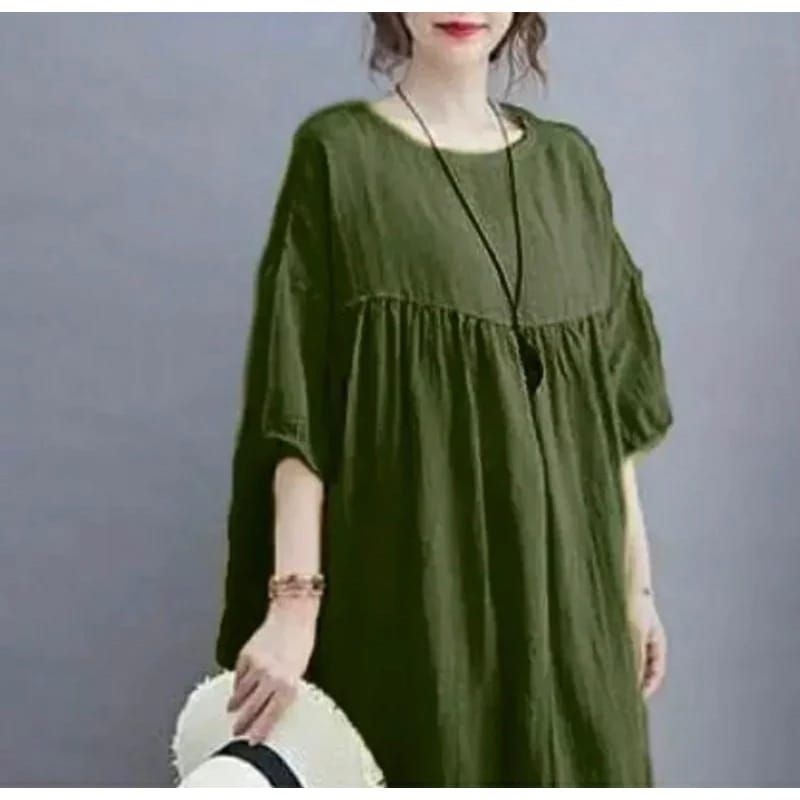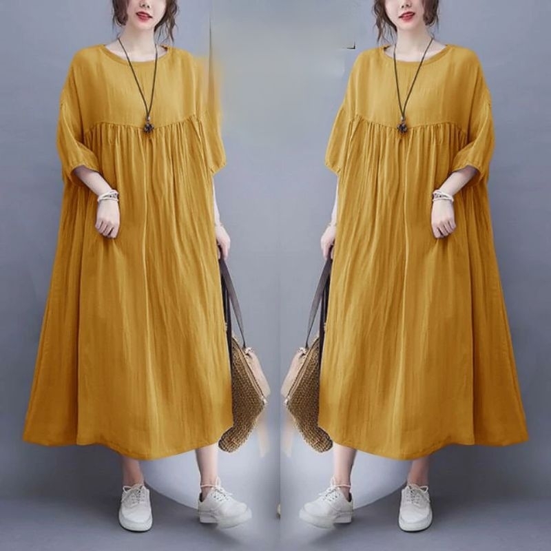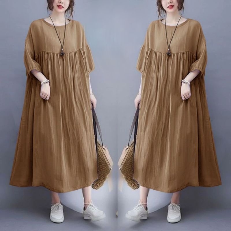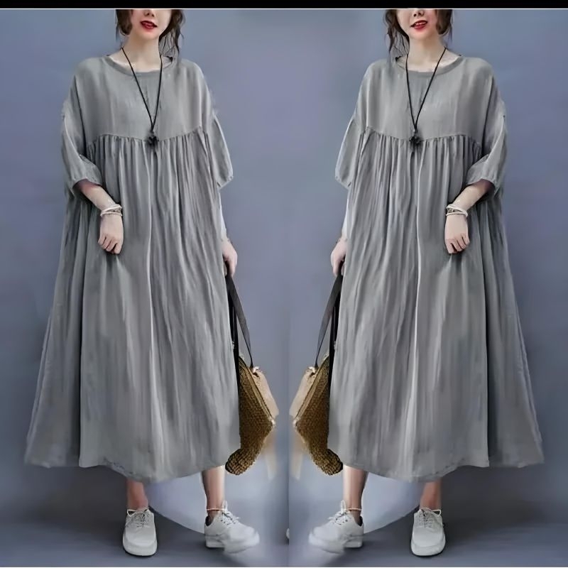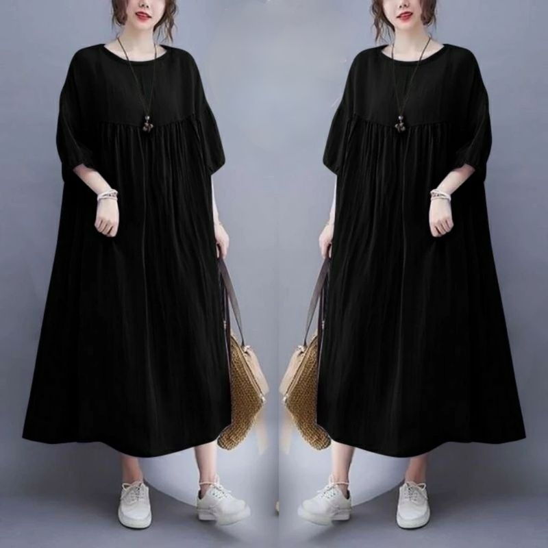 Midi Dress Cantik Rayon Premium Polos Jumbo