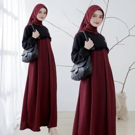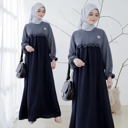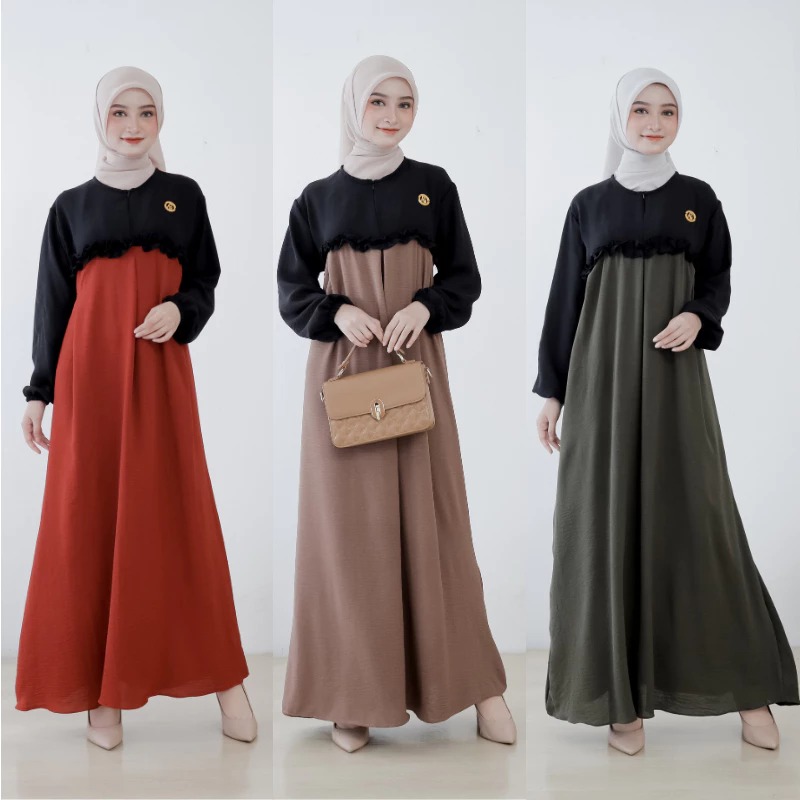 baju gamis - gamis wanita - dress - Gamis Kombinasi Warna Busui Friendly Dress Muslimah Daily Casual Premium