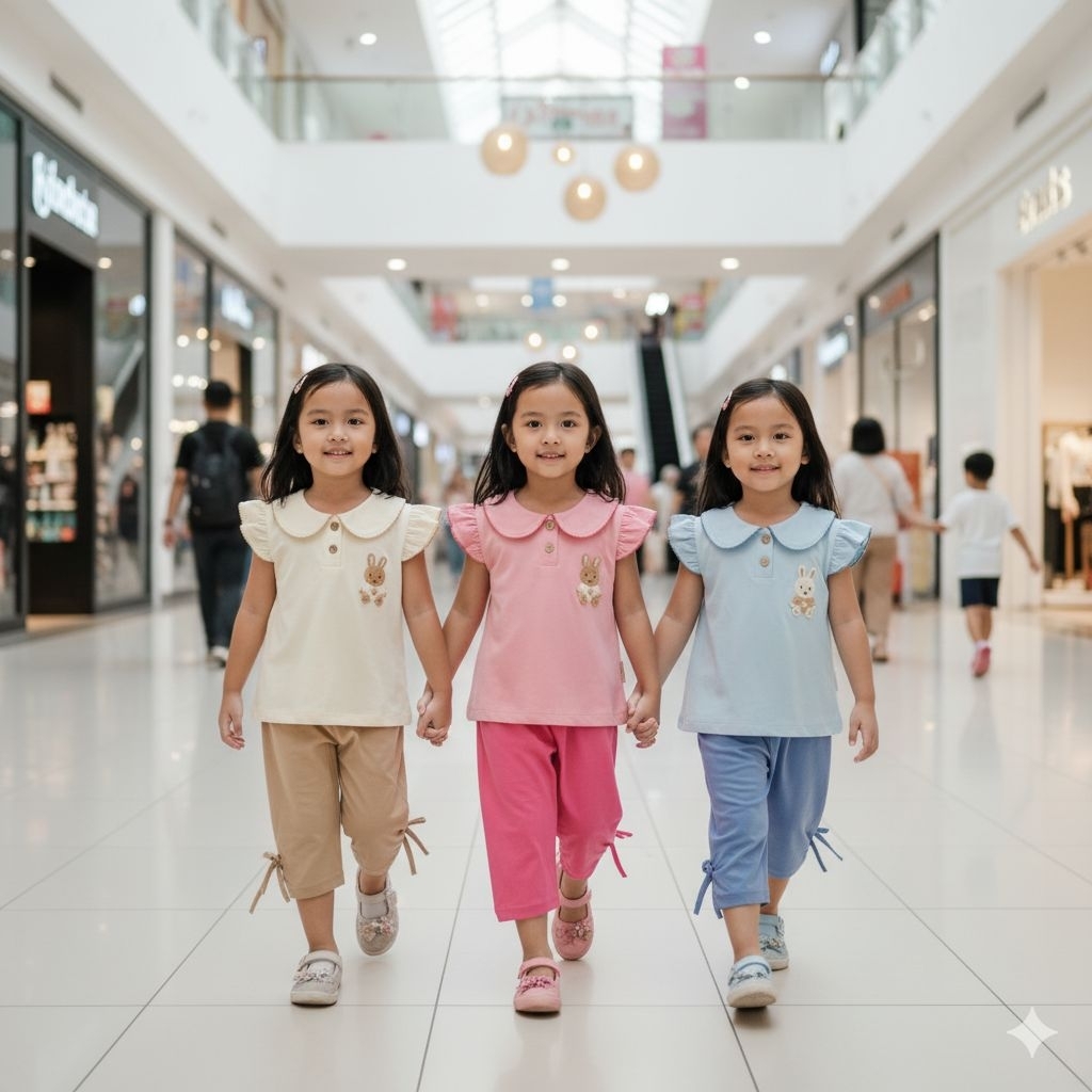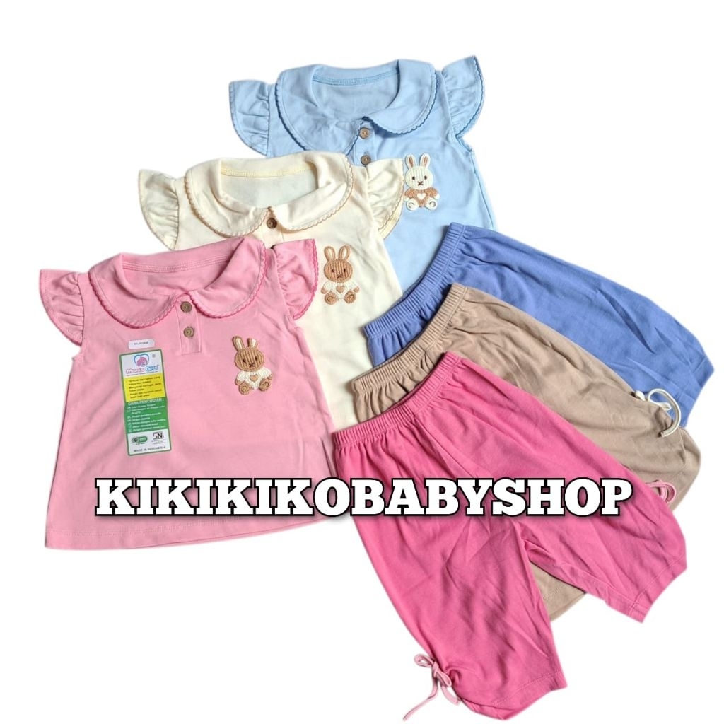 Setelan Bayi Premium Mom's Gift 3pcs - Oblong Lengan Pendek Rempel Boneka + Celana Panjang - M L XL (0-36 Bulan) - F1103