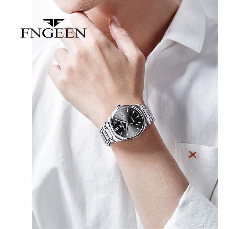 FNGEEN 2111 Jam Tangan Pria Tali Baja Kuarsa Asli Mekanik Bisnis Luminous Kalender Men's Fashion Watch