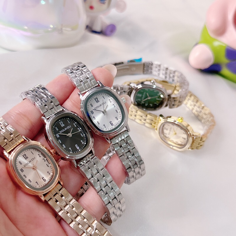 ONNIE Jam Tangan Wanita Doukou Oval Motif Angka Stainless Steel Anti Karat Retro Fashion Watch Jam tangan cantik (NOBOX)