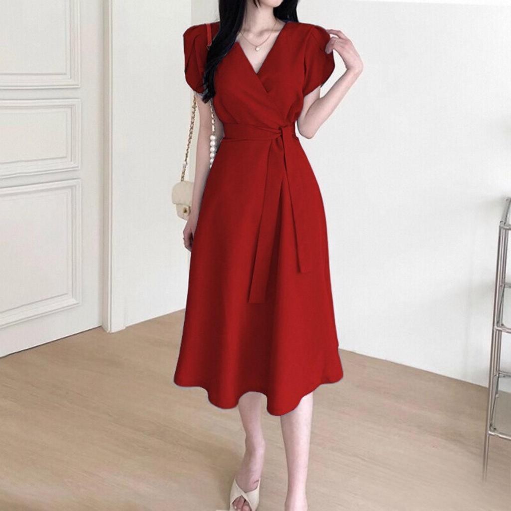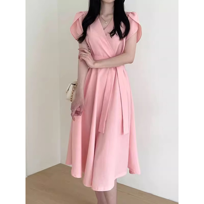 EMITA BLOOM summer dress biru muda wanita kekinian jumbo korean style bigsize baju midi dress polos press body terbaru l