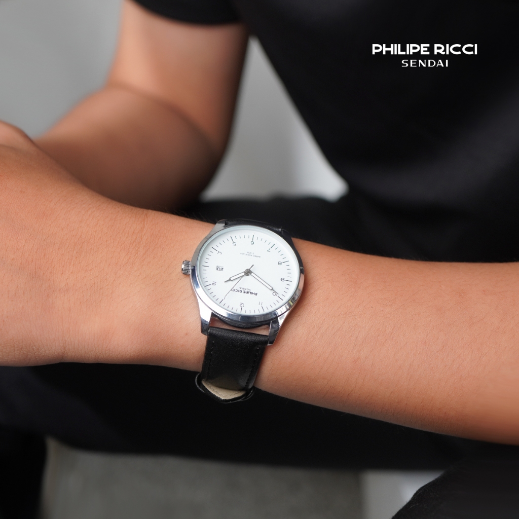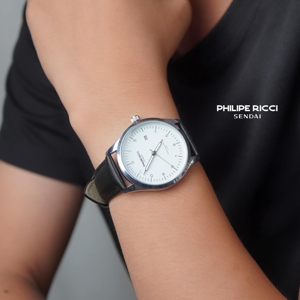 PhiLipe Ricci Sendai Jam Tangan Pria Kulit Hitam Keren Original Water Resist 3ATM 6344 Men Watches
