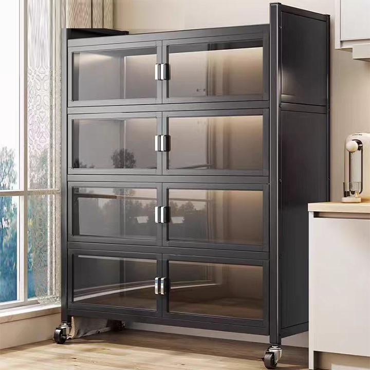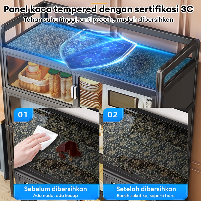 Rak piring Lemari Dapur stainless steel Lemari dapur serbaguna Lemari rak kaca keramik alumunium 3 pintu besi dinding