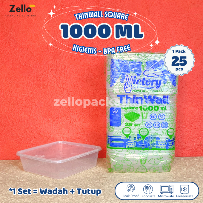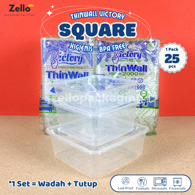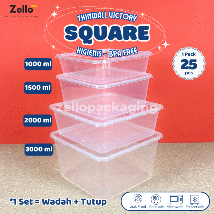 [25 PCS] Thinwall Square Victory 1000ml 1500ml 2000ml 3000ml Kotak Makan Plastik Persegi Murah Gratis Ongkir Garansi Pen
