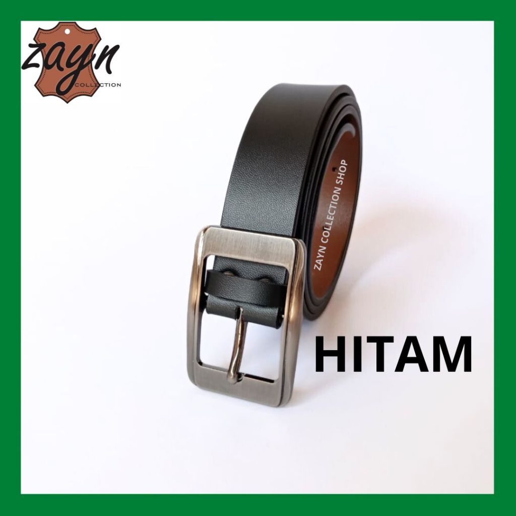 Ikat Pinggang Unisex Kepala Kotak Model Tusuk Jarum Gesper Pria Wanita Kulit Polos Hitam