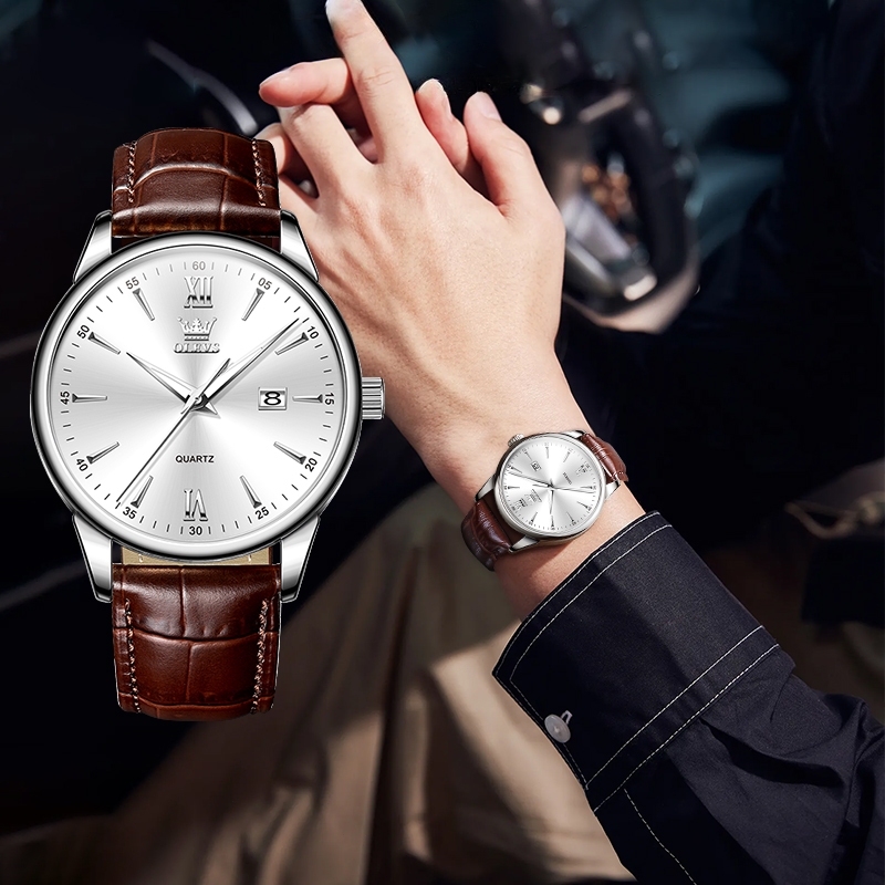 OLEVS Jam Tangan Pria Original Kulit Anti Air Cowok Analog Arloji Kalender Quartz Bisnis Fashion Men Watch Ready Stock Mode 5009