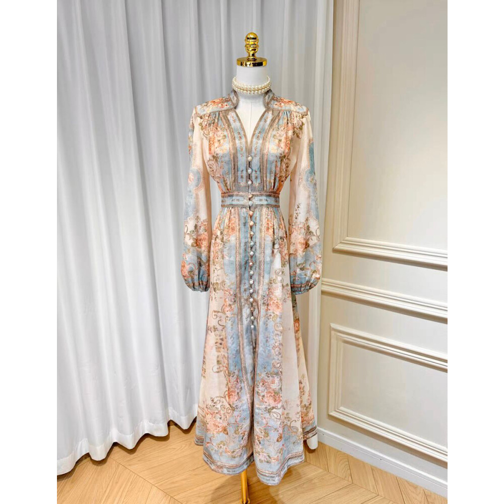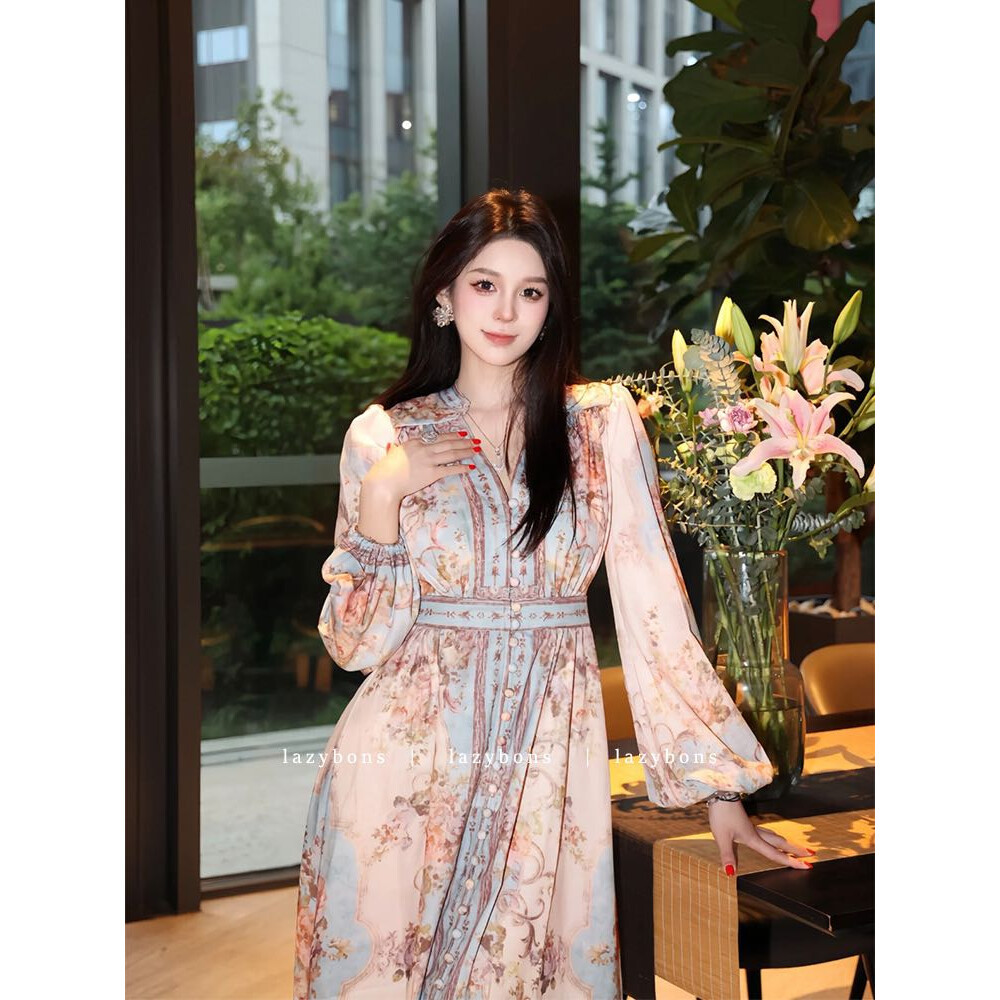 [ready stock] FADFAD | Gaun Panjang Wanita Elegan | Motif Bunga Vintage | Lengan Panjang Anggun | Bahan Ringan & Nyaman