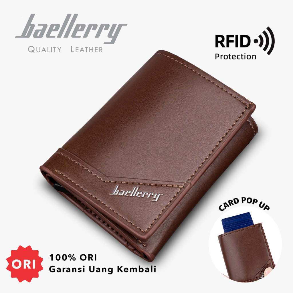 BAELLERRY K9214 Dompet Pria Lipat Pendek Kartu Bahan Kulit PU Leather Premium BAEOS