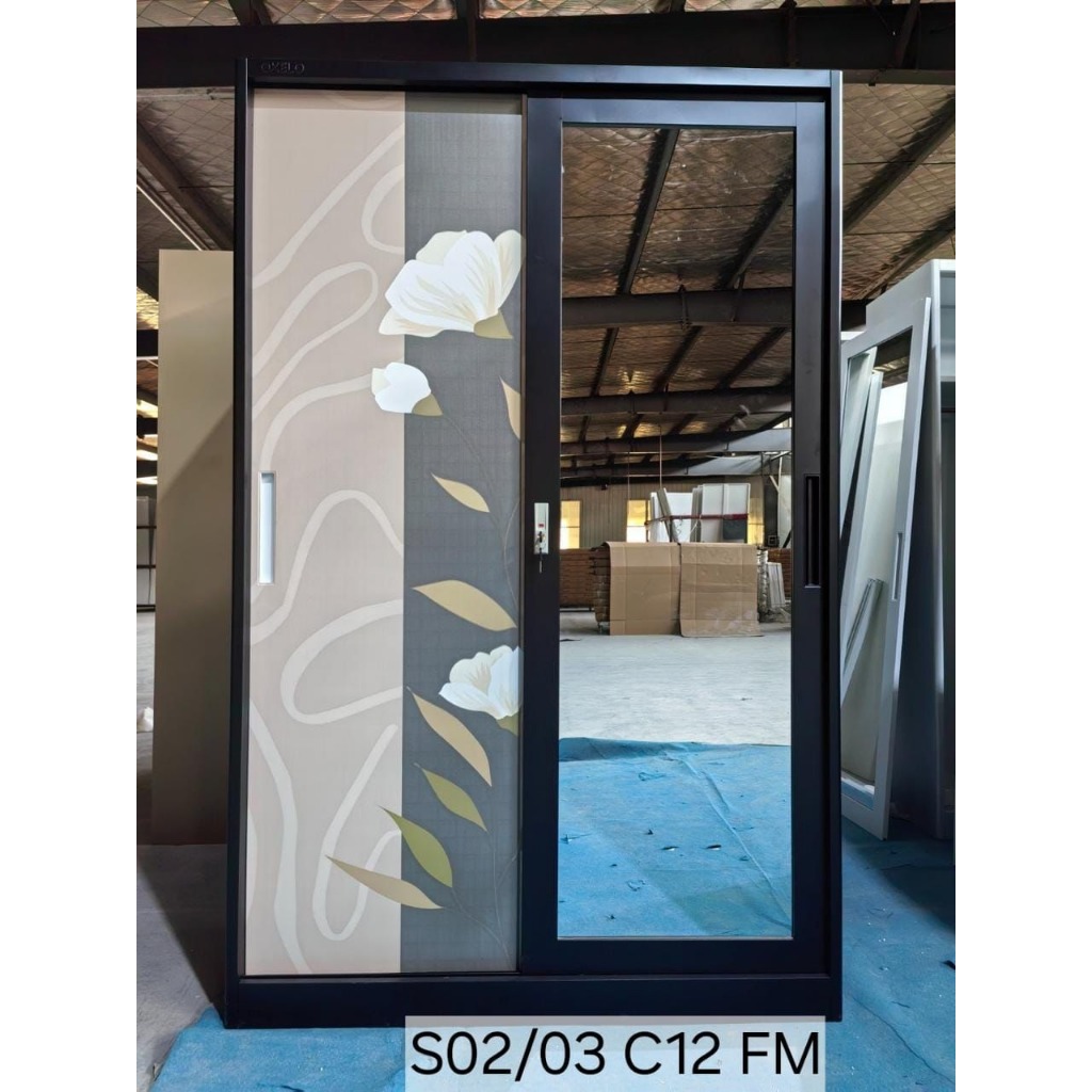 Lemari Pakaian Besi 2 Pintu Sliding Jumbo | Lemari Baju Sleding Cermin Cuci Gudang