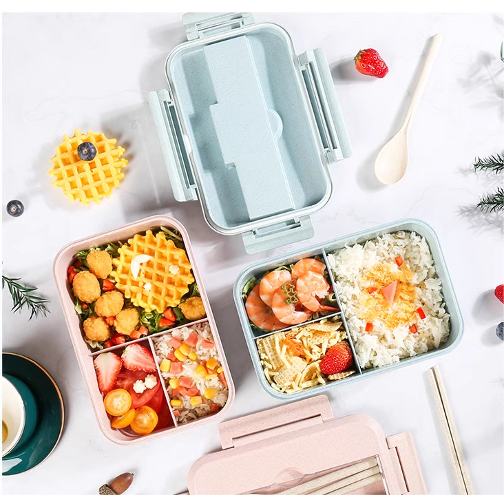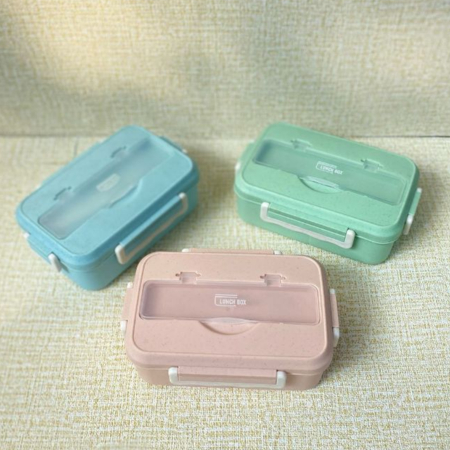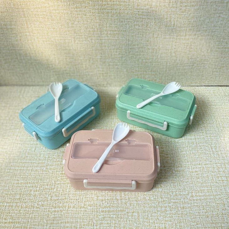 SUKRA Lunch Box Set Kotak Bekal Makan Jerami Gandum kotak makan Anti Tumpah Free Sendok ice cream fork Murah Gratis Ongk