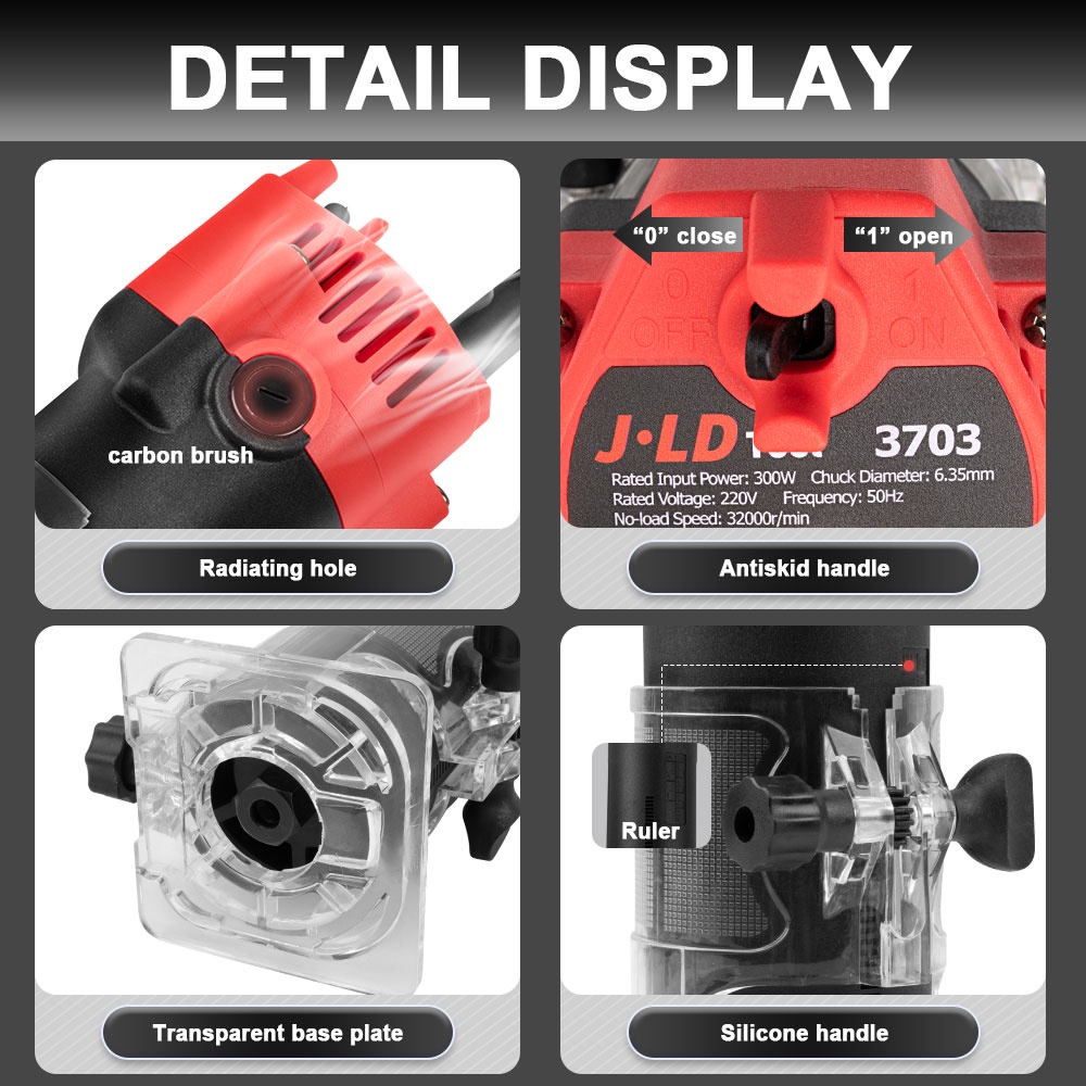 JLD 6MM Mesin Profil Kayu Mesin Router Trimmer mesin Trimmer kayu J3703 Wood Trimmer 300W