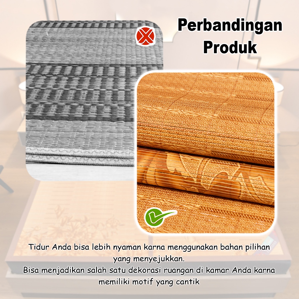 Tikar Bambu Karpet Lantai Premium 180X200 160X200 120X200 Free Tas Anti Slip Anti Air - X2A2/B2/C2
