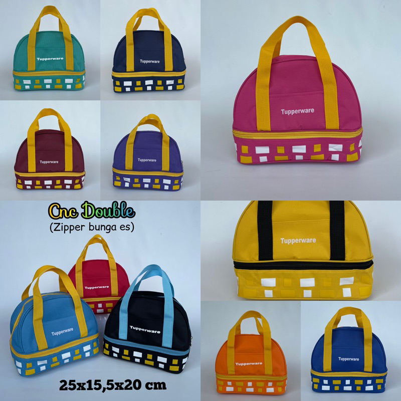 CnC Double Motif Kotak Lunch Bag Polyester / d300 (zipper bunga es) / / Tas bekal Murah Gratis Ongkir Garansi Pengiriman