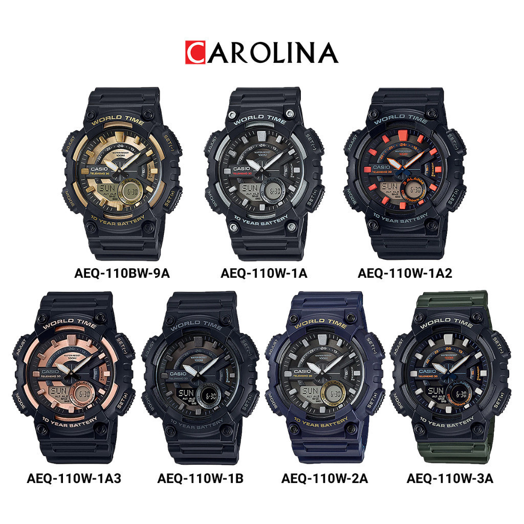 Jam Tangan Pria CASIO AEQ-110W-1B Analog Digital Dial Black Resin Band