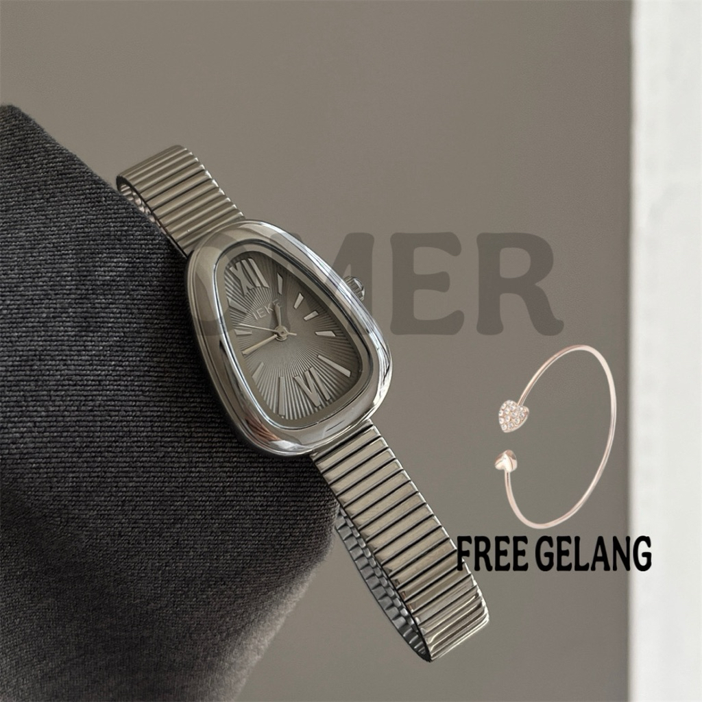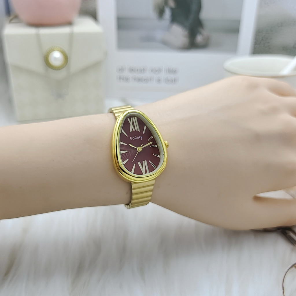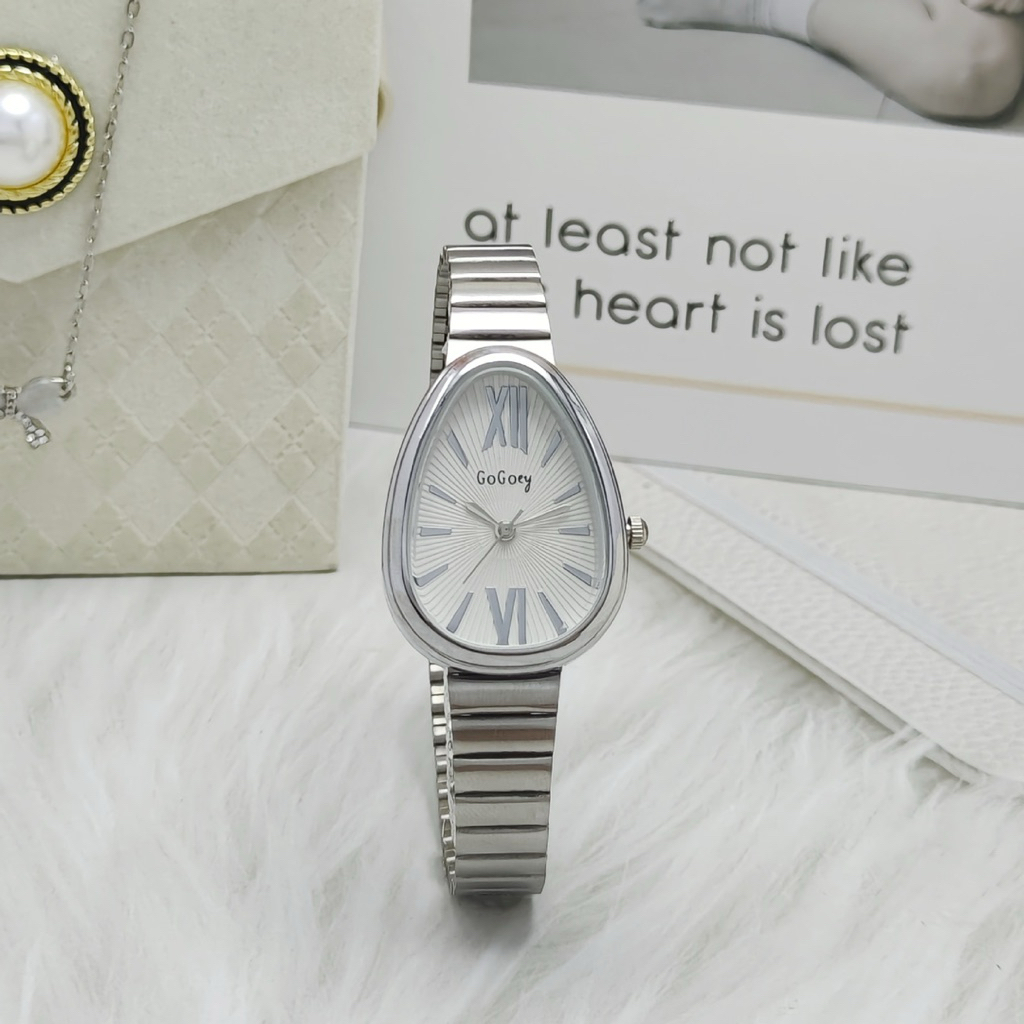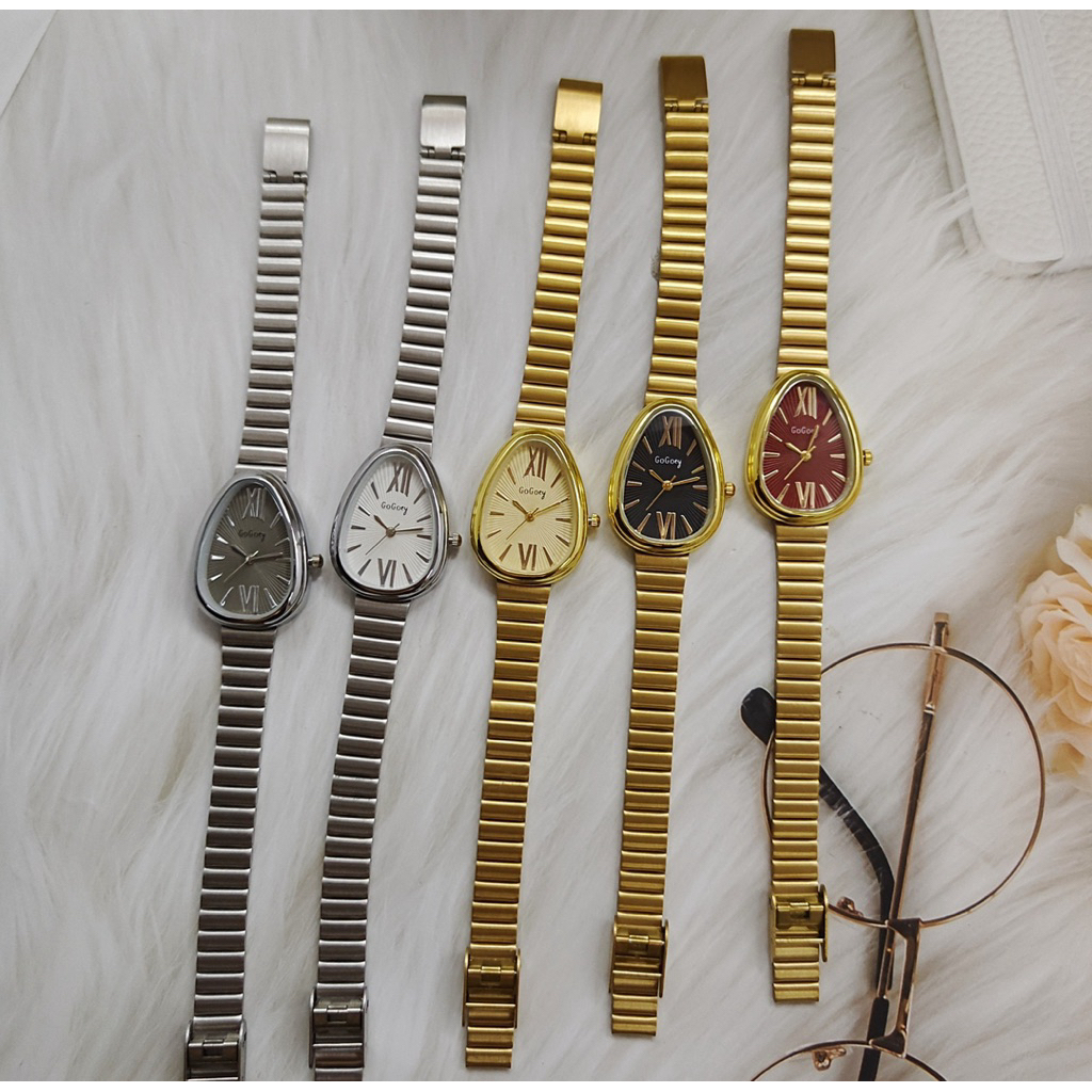 [FREE GELANG] Jam Tangan Wanita Gogoey Oval Tali Stainless Steel Mewah Jam Tali bisa Di adjust Analog Fashion