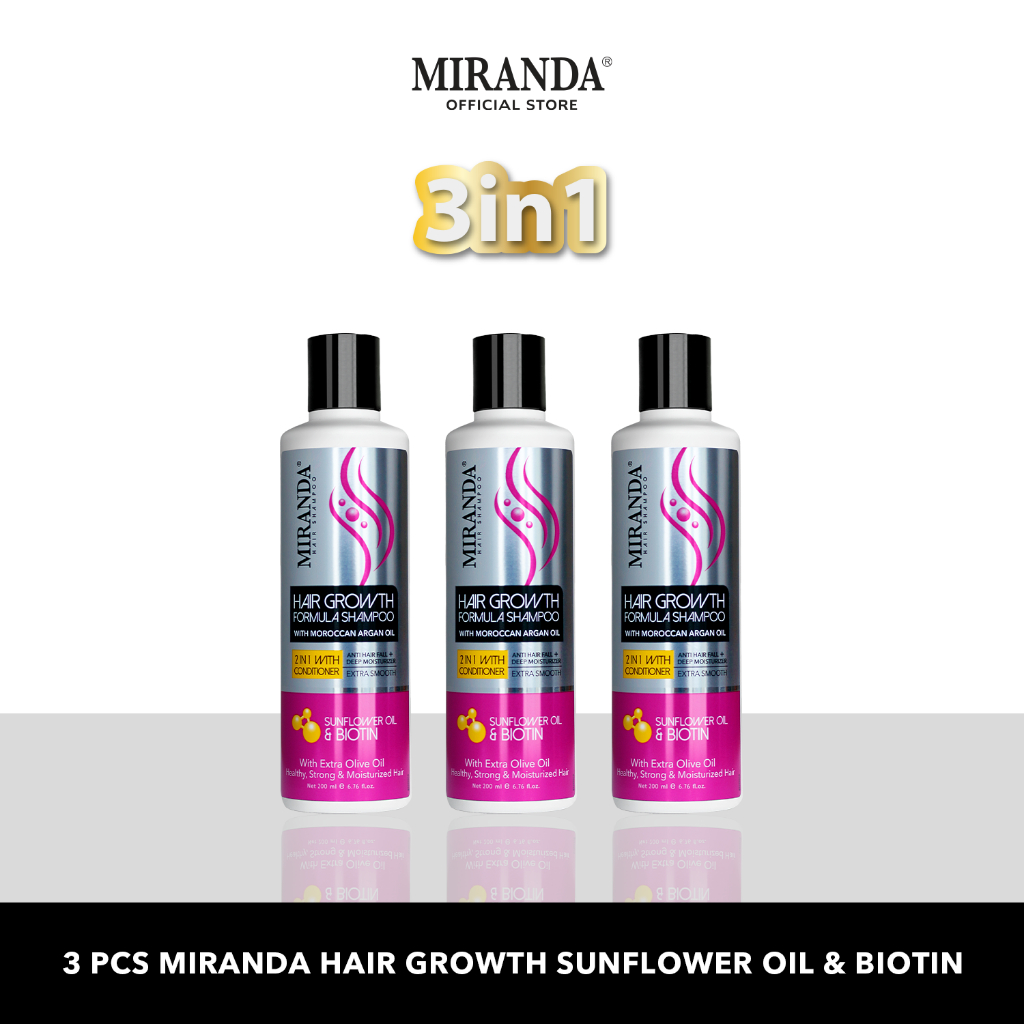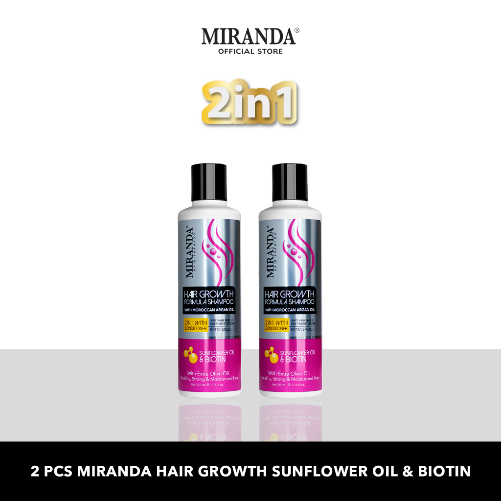 PAKET 1PCS 2PCS 3PCS Miranda Hair Growth Biotin Shampoo 2in1 with Conditioner 200ml Penumbuh Pemanjang Rambut Rontok Cepat