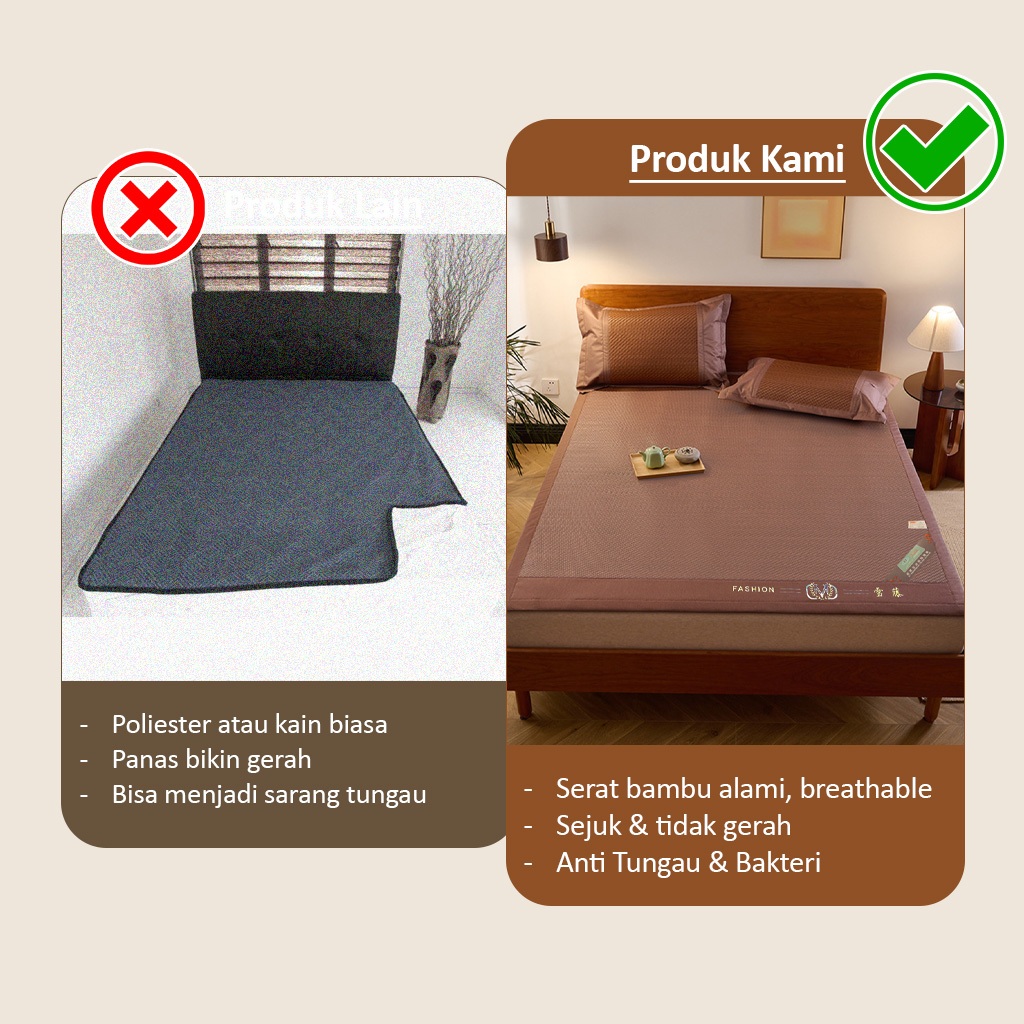 Free Tas | Tikar Bambu Lipat / Karpet Rotan Halus Premium Pendingin Kasur Tiker Alas Lantai Tidur X10A1/B1/C1