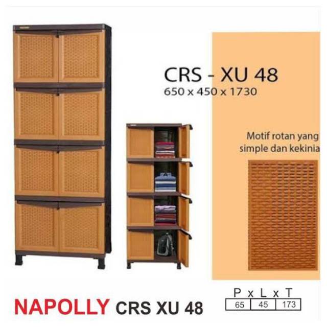 Lemari Pakaian Plastik Serbaguna 4 Susun Rotan Napolly Crs Xu48