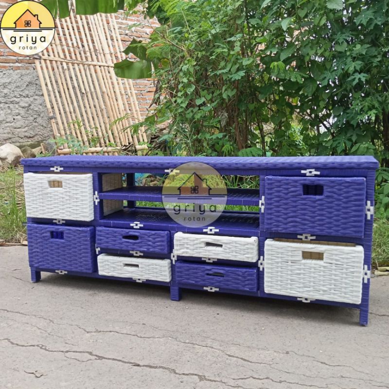Lemari Tv Rotan Sintetis 8 Laci Lemari Plastik Rotan Rak Buku Serbaguna Murah