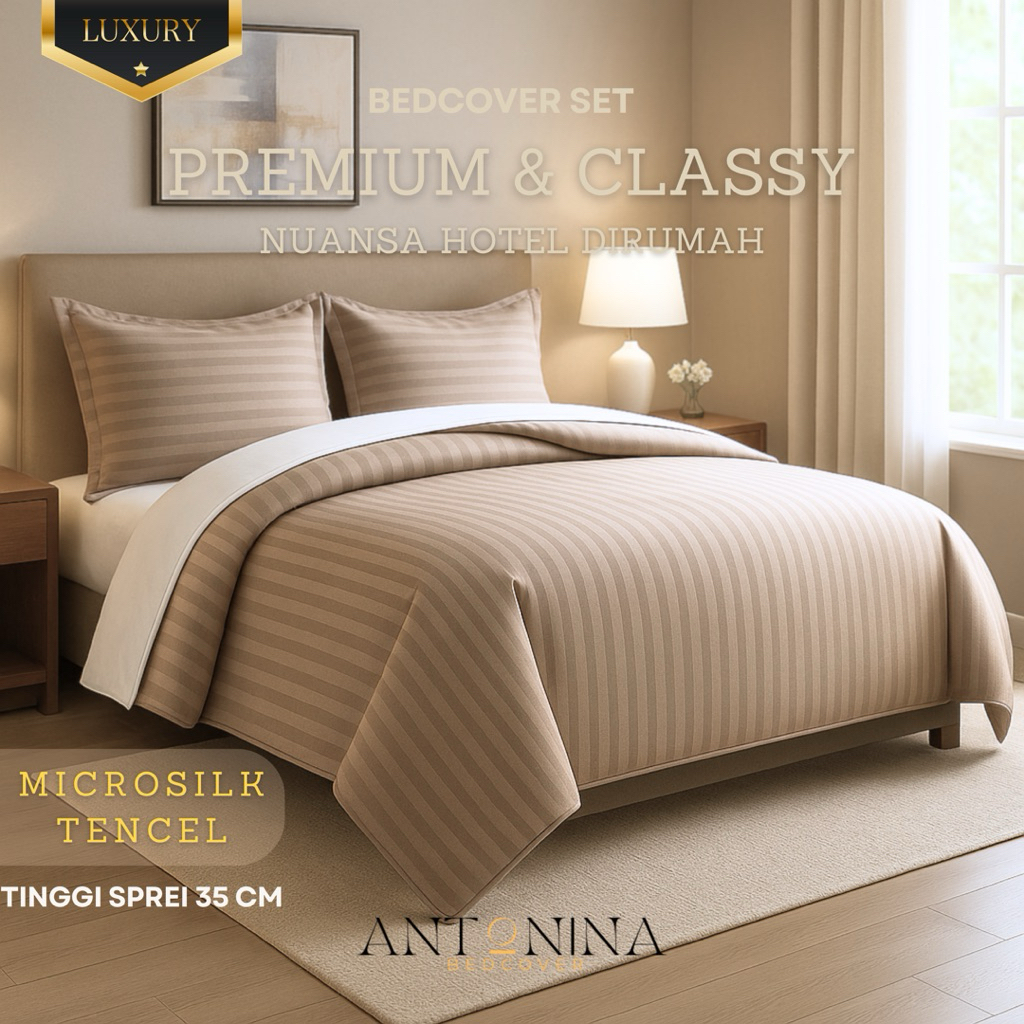 Bedcover Set 120 Tinggi 35 Cm | Sprei Hotel Microsilk Tencel Lembut Adem dan Dingin 160x200 200x200