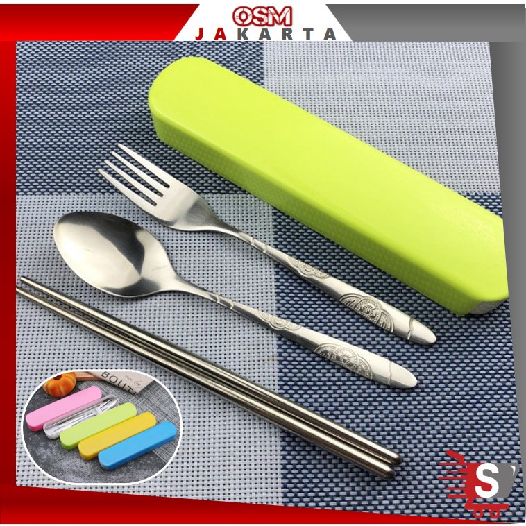 OSM JKT H587 Stainless Steel Set Alat Makan Sendok Garpu Sumpit / Set Alat Makan Portable Travel Murah Gratis Ongkir Gar