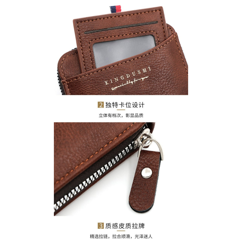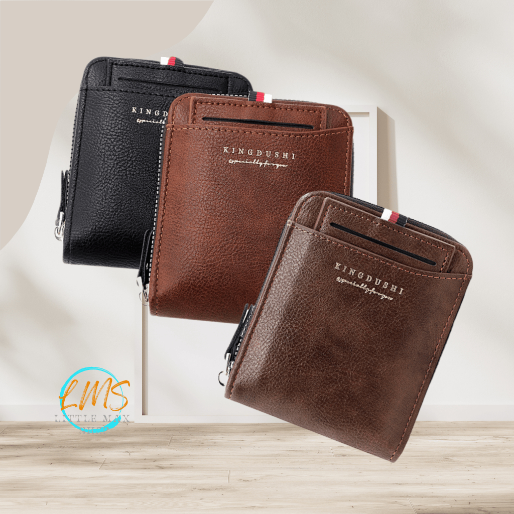 [Lms] Dompet Lipat Pria Kulit PU Resleting Original | Minimalis Ringan Tahan Air | Banyak Slot