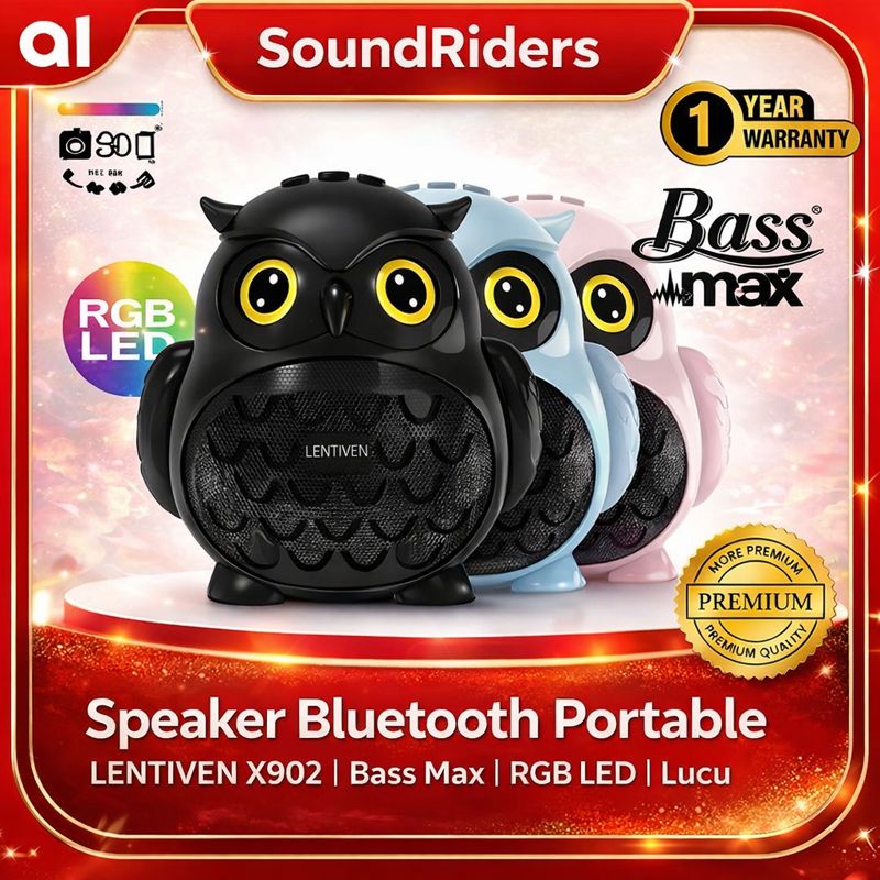 [Mall] Speaker Bluetooth Portable LENTIVEN X902 SoundRiders | Bass Max | RGB LED Lucu | Garansi Resmi 1 Tahun