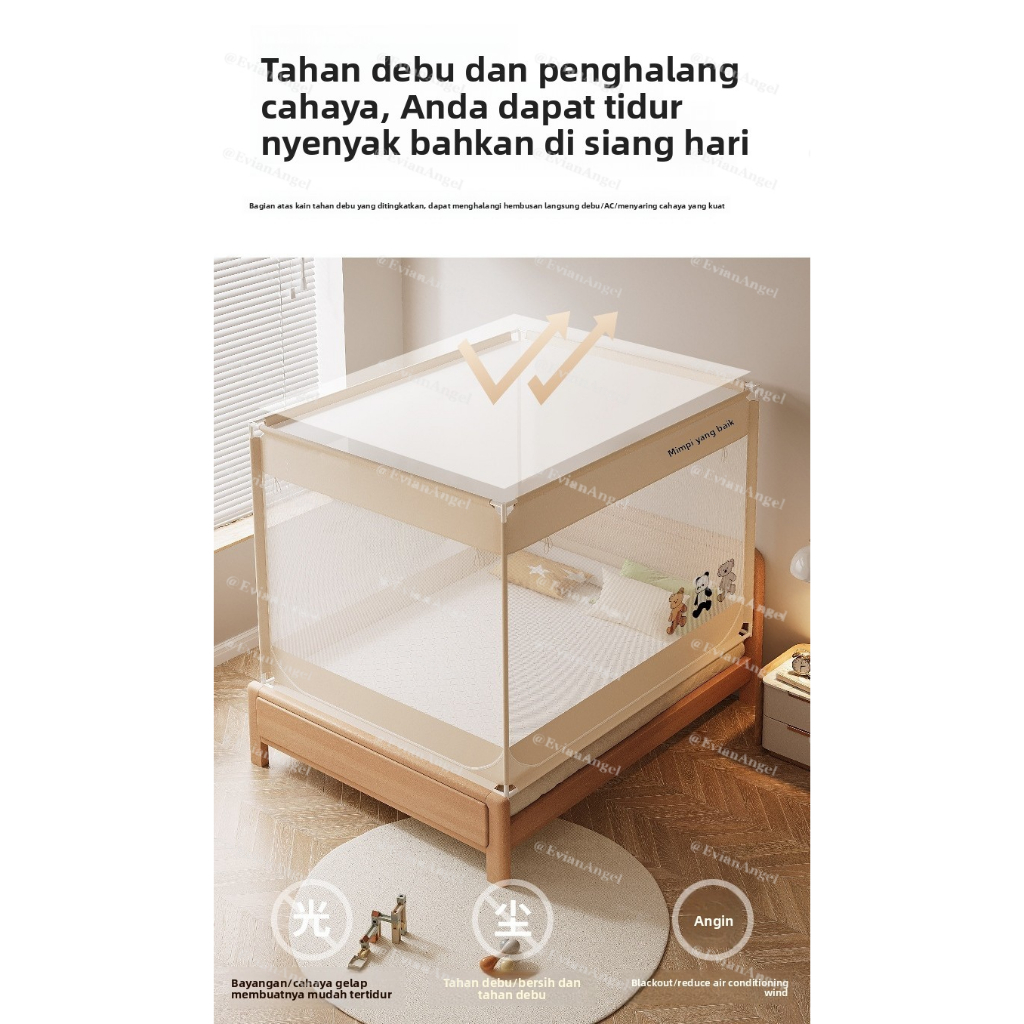 EvianAngel Kelambu Anti Jatuh Anti Nyamuk Tenda Bayi & Dewasa Jumbo Kotak 120x200 150x200 200x220