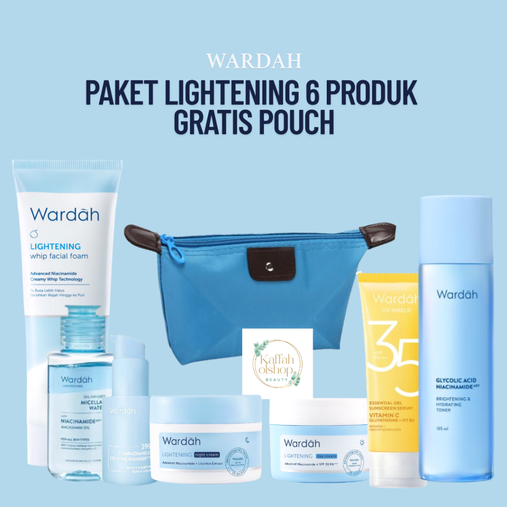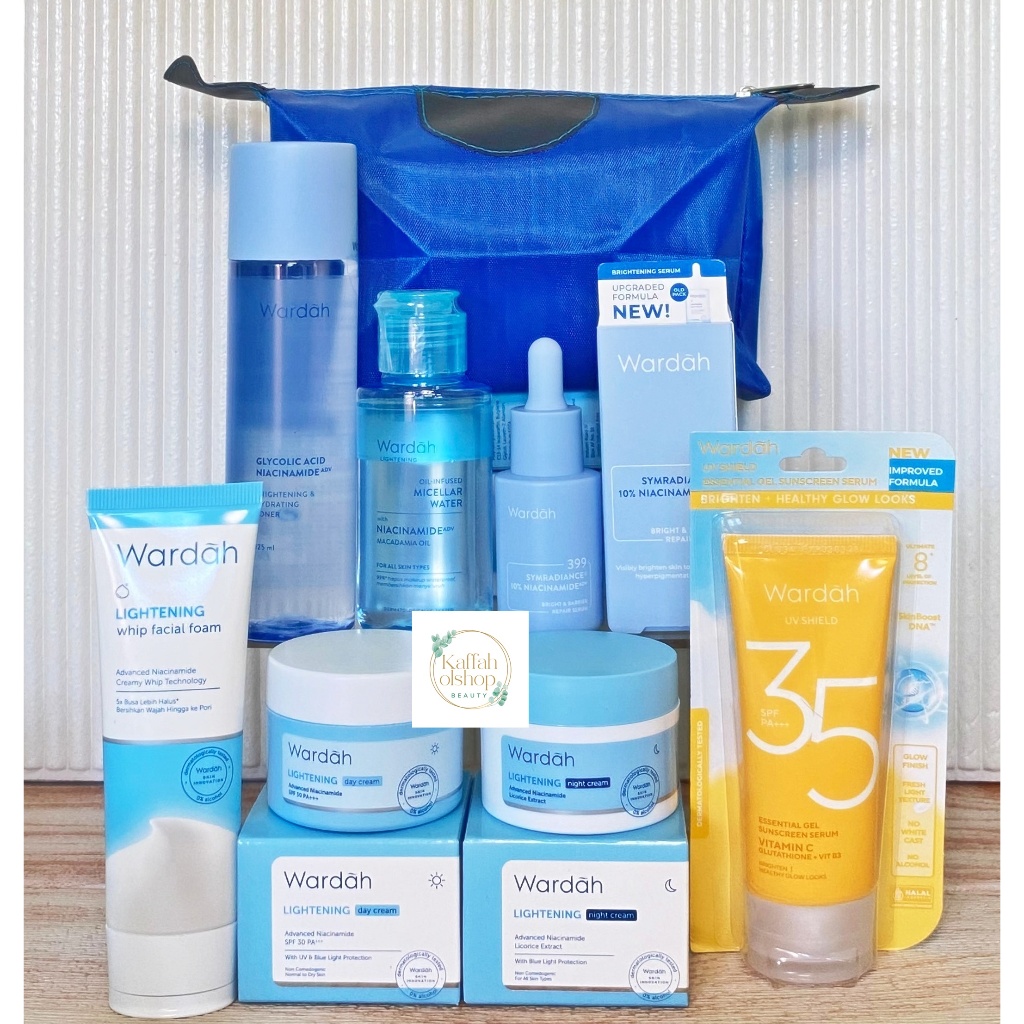Wardah Paket Lightening 7pcs (Face Wash| Serum| Day Cream| Night Cream| Toner| Sunblock| Micellar)