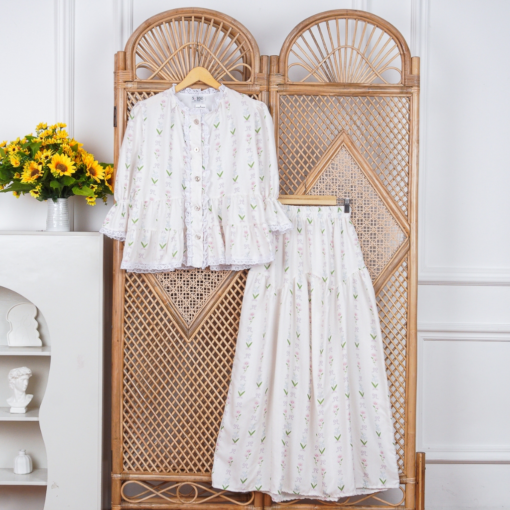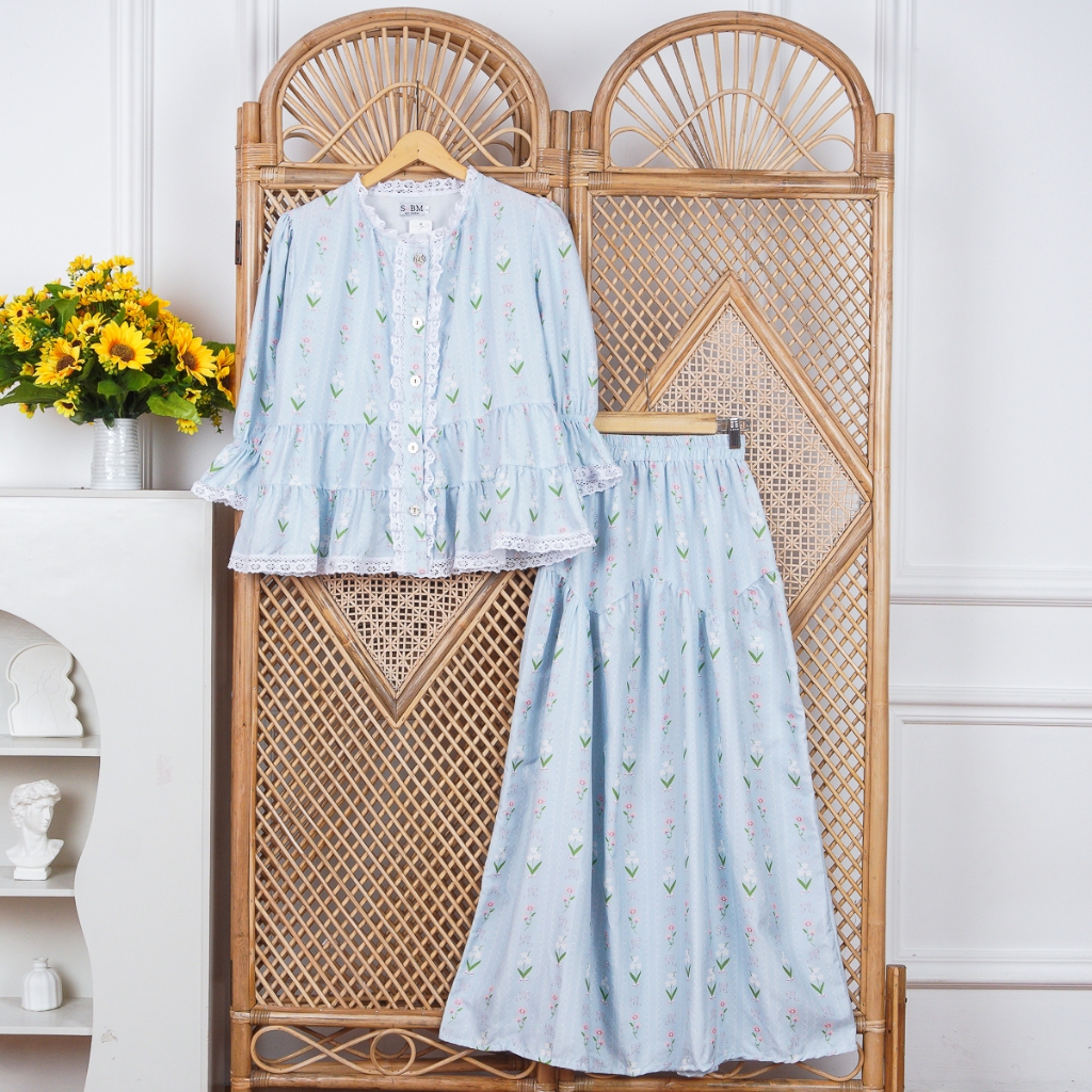 NJW SETELAN ASAYAH MOTIF BUNGA LENGAN RENDA & ROK MAXI SETELAN WANITA TREND FASHION BAJU WANITA TERLARIS