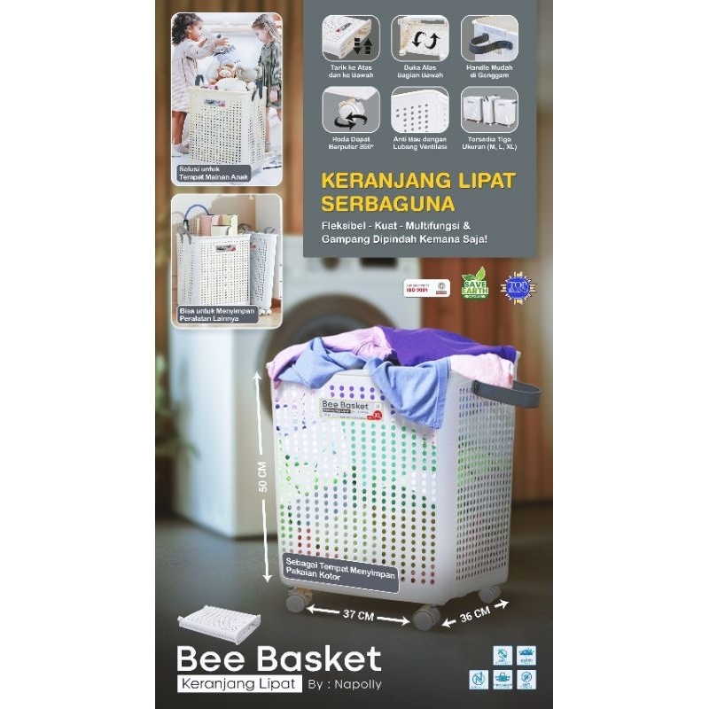 Keranjang Pakaian Lipat Serbaguna BEE BASKET 37x36x50 Cm