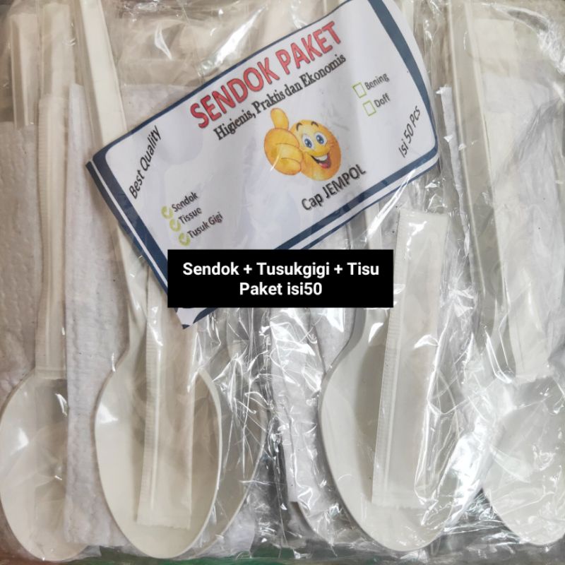 SENDOK PAKET + Tusukgigi + Set Tisu Pack isi 50 Plastik Higienis catering Murah Gratis Ongkir Garansi Pengiriman