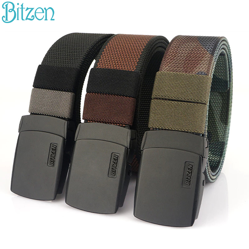 Bitzen Ikat Pinggang Pria Canvas Sabuk Pinggang Pria Casual Nylon Premium Gesper Pria
