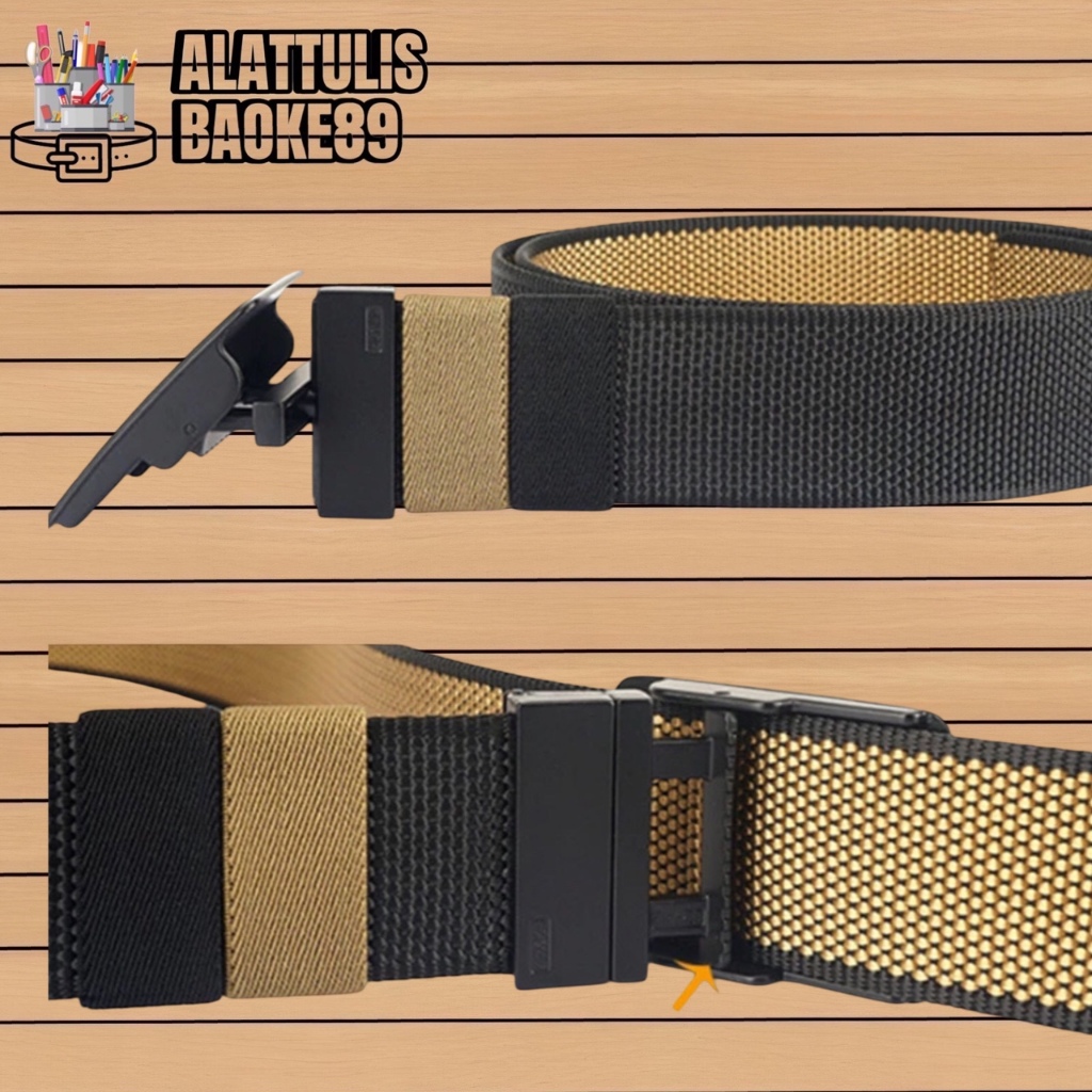 ikat pinggang bahan tali kanvas nylon bisa ganti warna (dua warna) kepala besi polos segi anti karatan produk import