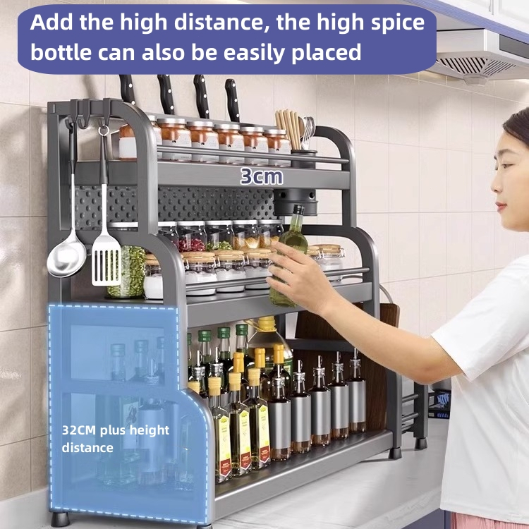 RAK BUMBU DAPUR STAINLESS STEEL MINIMALIS ESTETIK RAK PENYIMPANAN REMPAH TEMPAT BUMBU ANTI KARAT KOKOH
