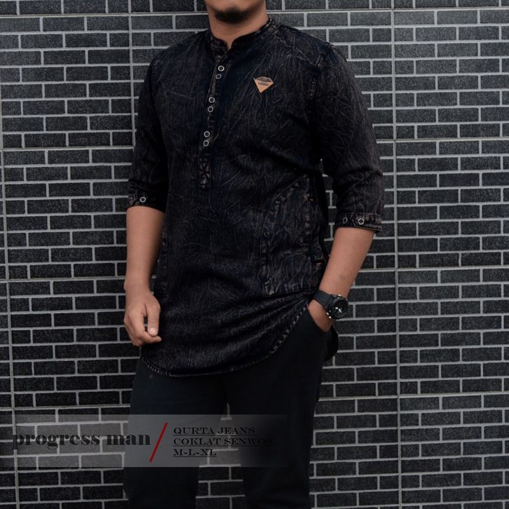 Baju Kurta Pakistan Shanghai Original Distro Dewasa Anak Lengan 3/4 Denim